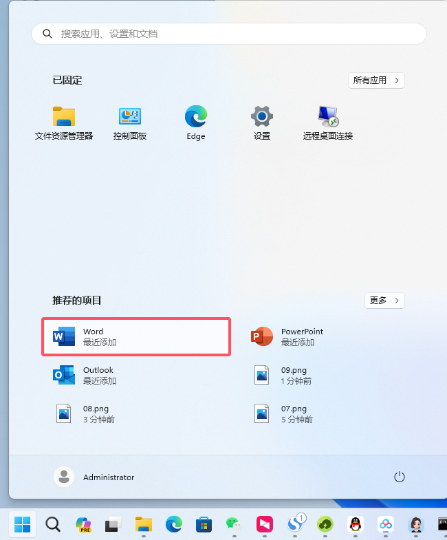 第12步、可以在开始位置中找到word等office软件双击打开其中一个